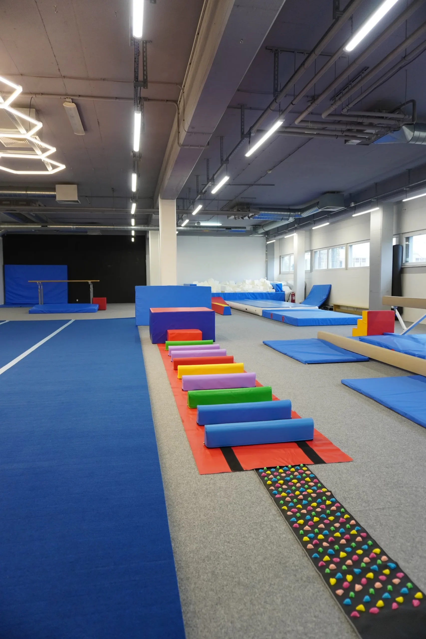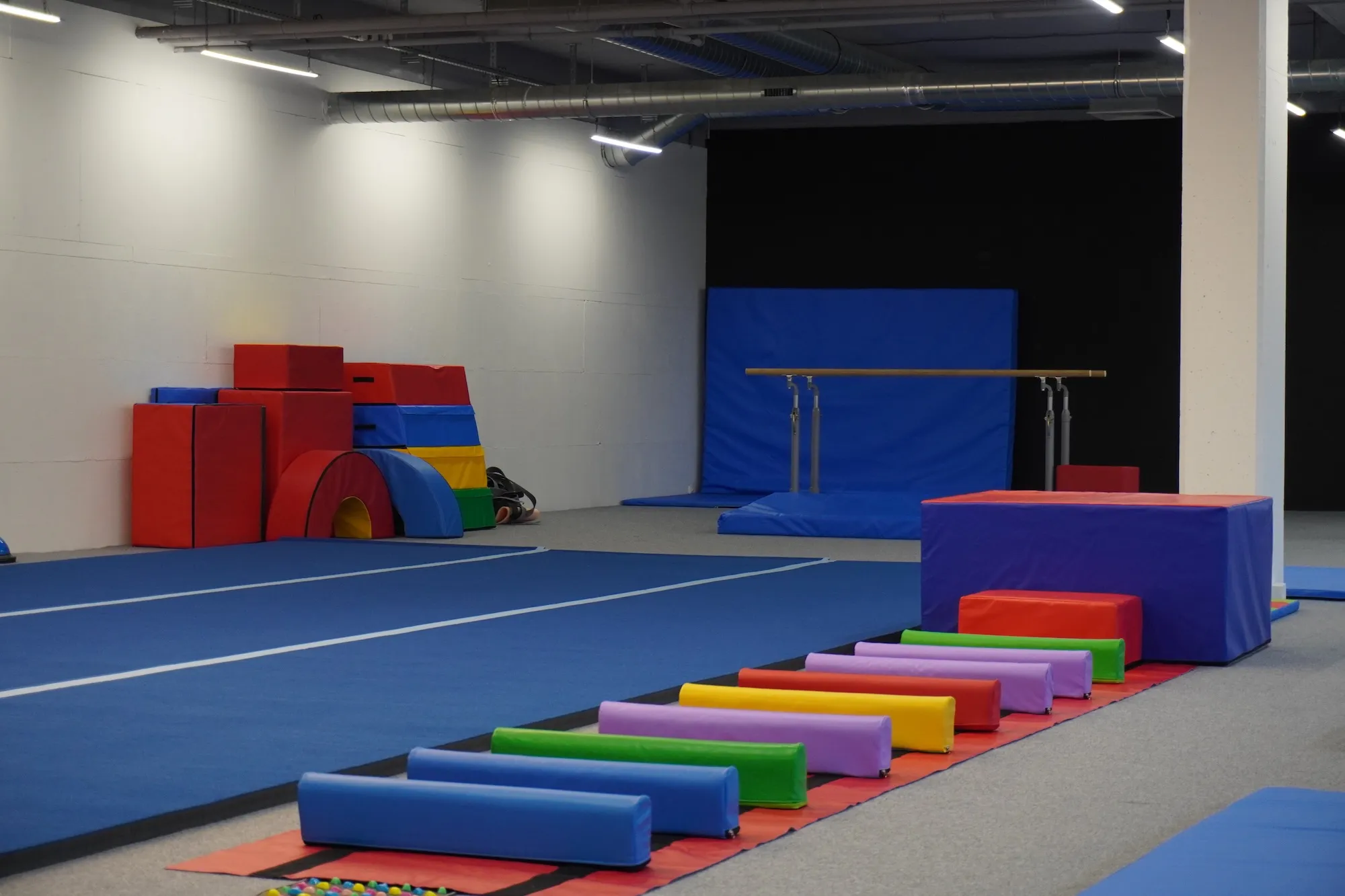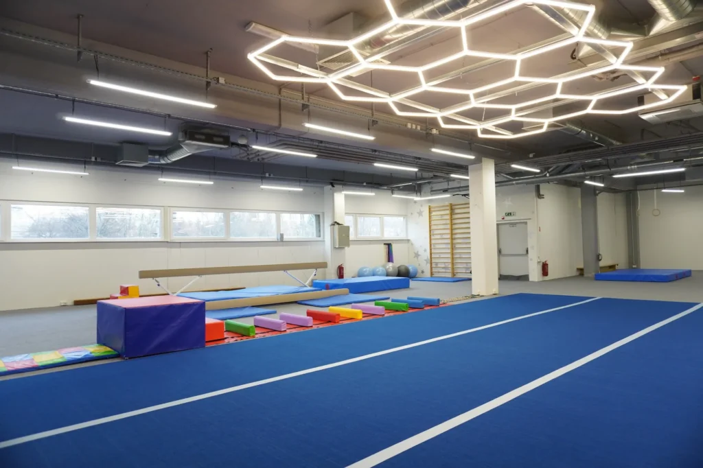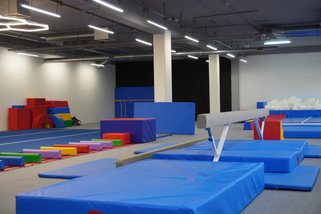 Telocvičňa je vybavená profesionálnymi prvkami – molitanová jama, kladina, bradlá, kruhy, trampolína, airtrack a množstvo balančných a koordinačných pomôcok. Vďaka tomu sú tréningy bezpečné, pestré a zábavné. Trénujeme v menších skupinách, aby mal každý dostatok pozornosti trénera.