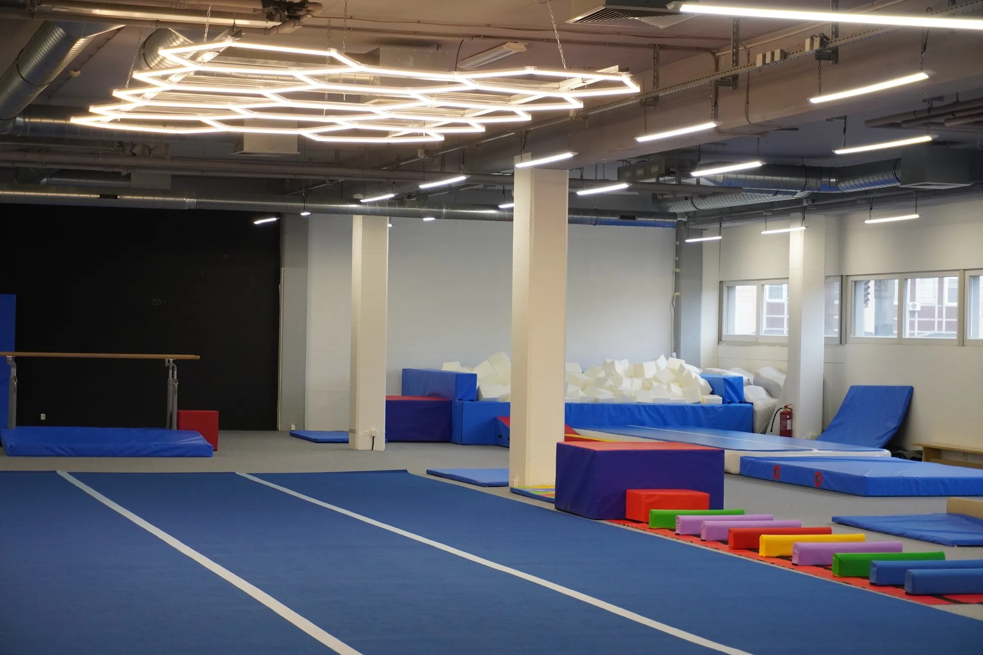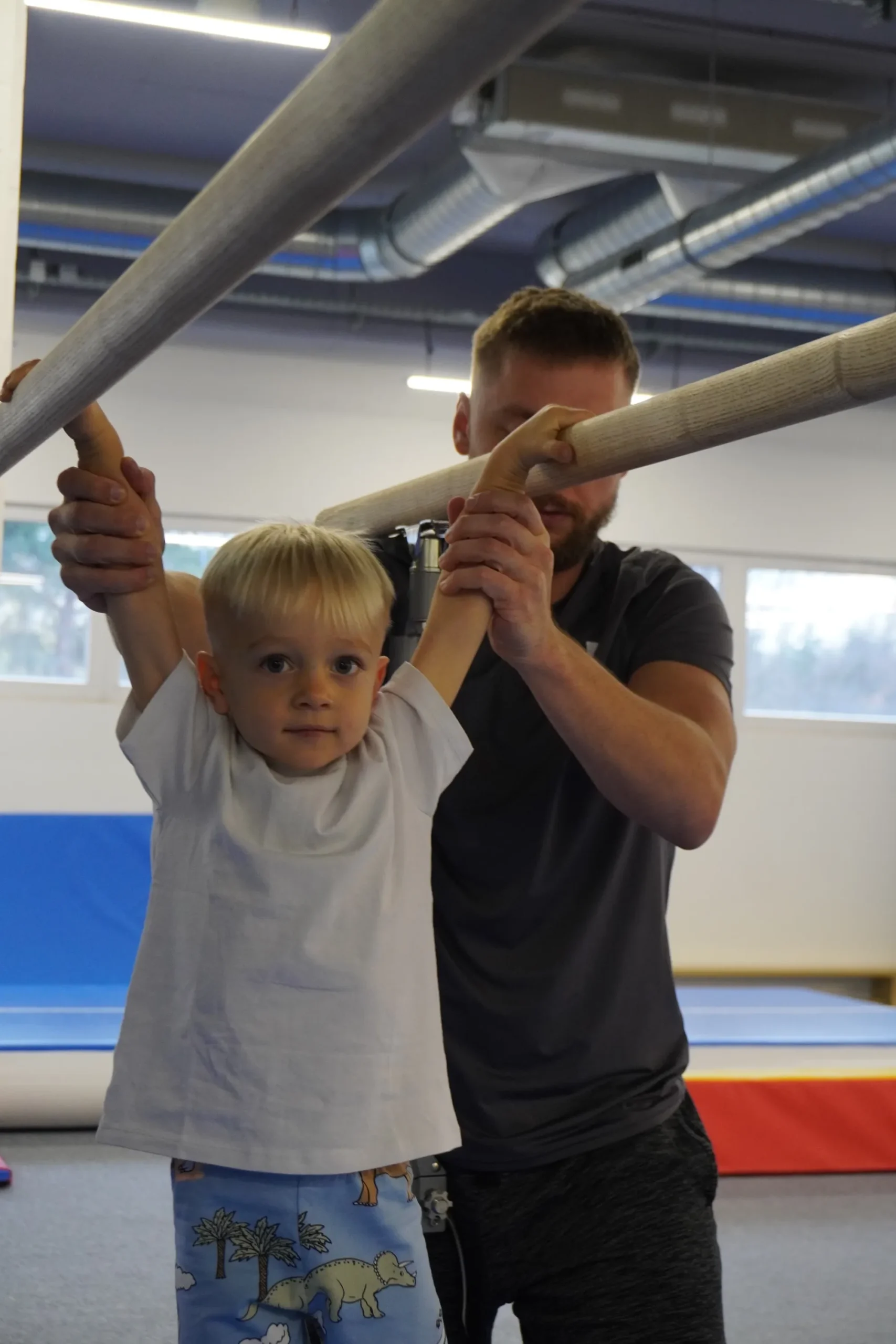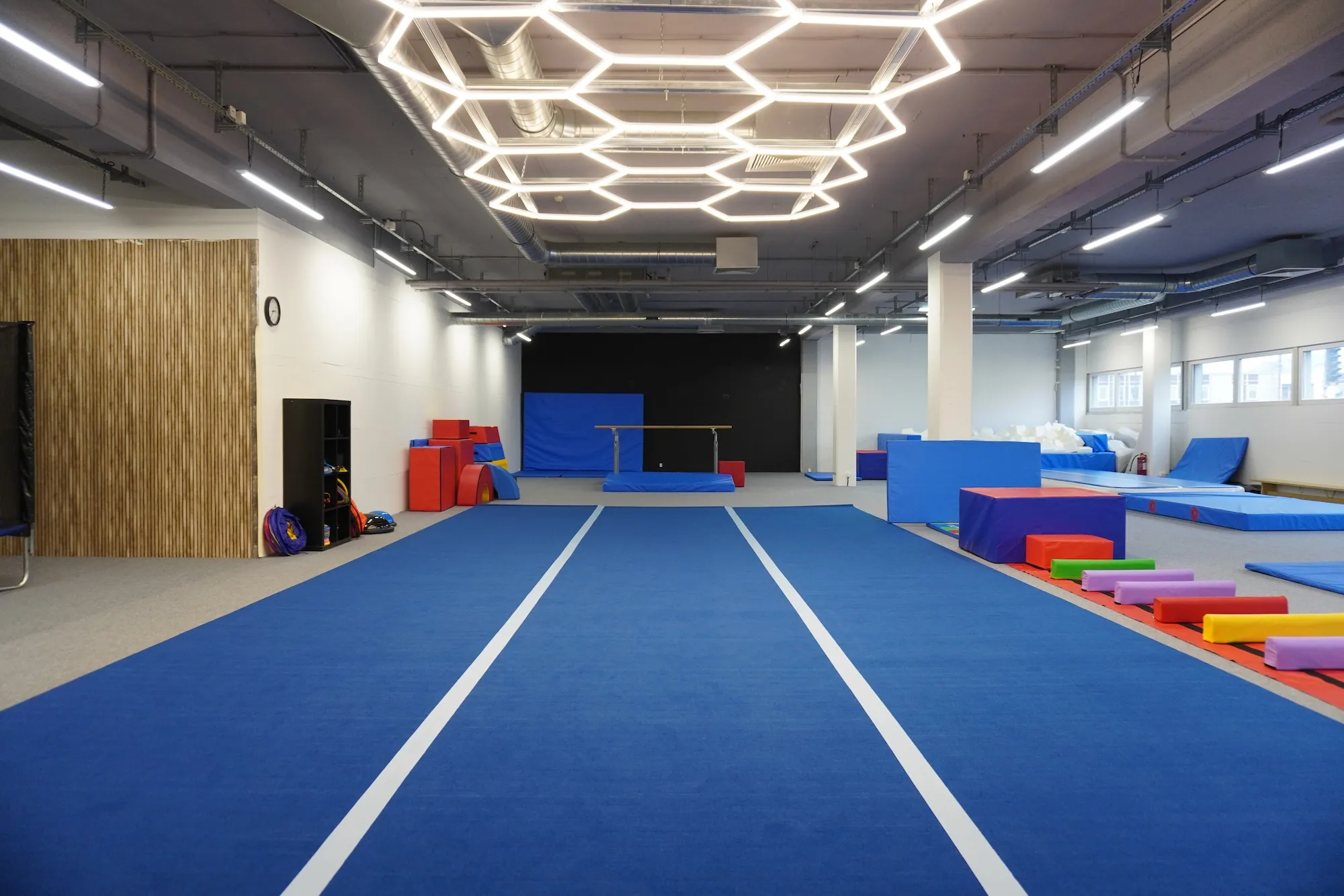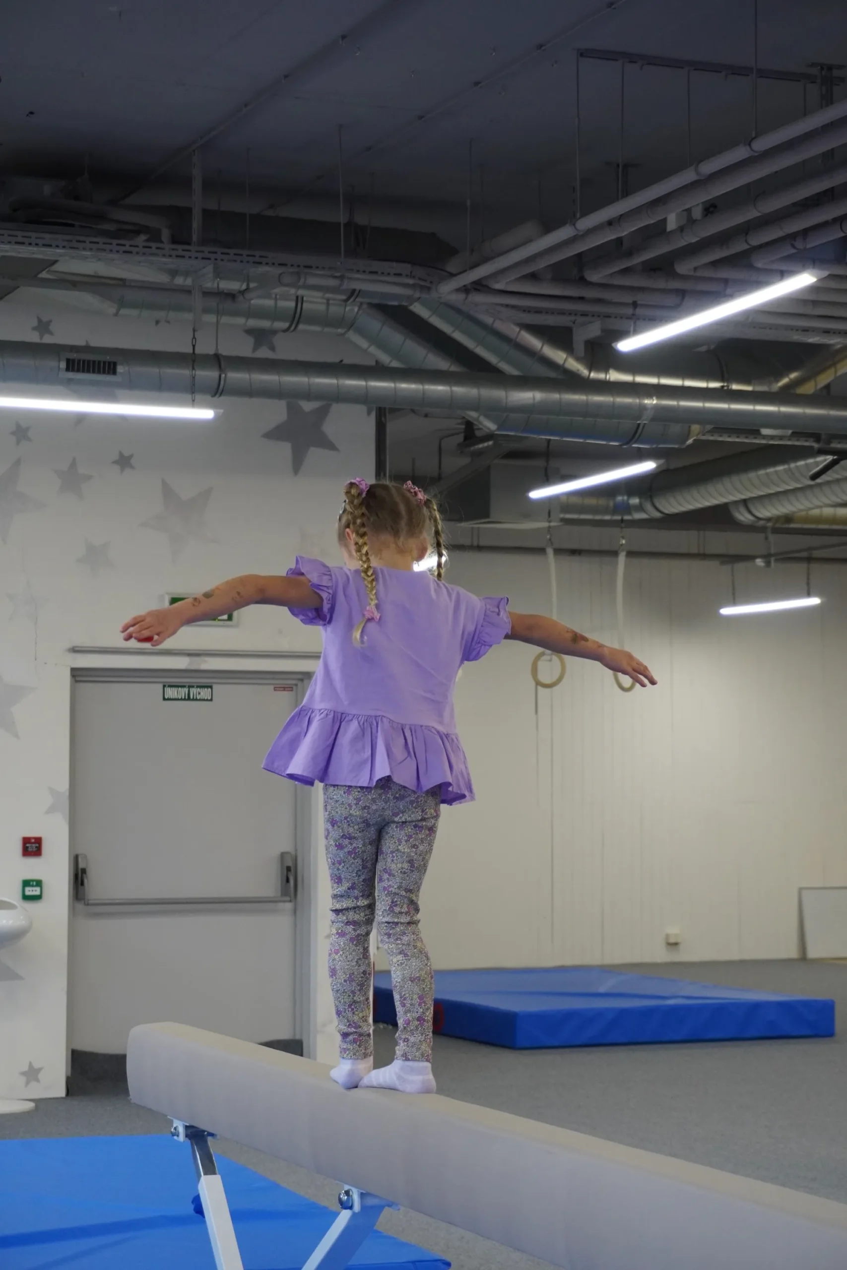 Telocvičňa je vybavená profesionálnymi prvkami – molitanová jama, kladina, bradlá, kruhy, trampolína, airtrack a množstvo balančných a koordinačných pomôcok. Vďaka tomu sú tréningy bezpečné, pestré a zábavné. Trénujeme v menších skupinách, aby mal každý dostatok pozornosti trénera.